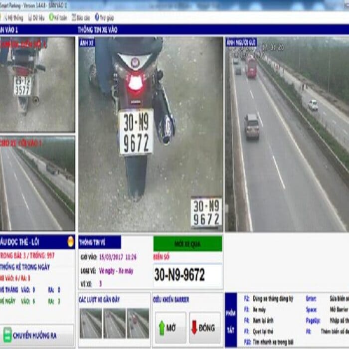 Camera nhận diện biển số và gửi tín hiệu để barie mở khi xe hợp lệ.