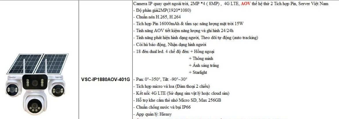 Camera Năng Lượng Mặt Trời AOV VSC-IP1880AOV-401G – Giải Pháp Giám Sát Thông Minh, Tiết Kiệm Năng Lượng 24/7