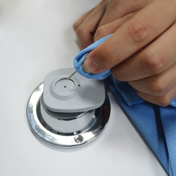 - Liên kết giữa đinh ghim với tem từ chỉ có thể tháo ra dễ dàng bằng bộ gỡ tem từ cứng.