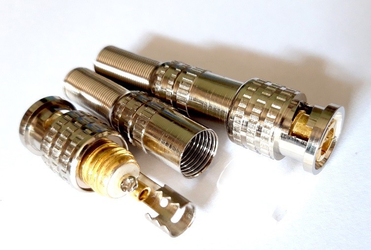 Jack BNC lò xo chuyên dùng trong các hệ thống camera Analog-AHD-CVI-TVI, kết nối cáp đồng trục RG59 hoặc RG6. Lõi tiếp xúc được phủ đồng nguyên chất đảm bảo truyền tín hiệu tốt, thao tác dễ dàng khi kết nối với cáp.