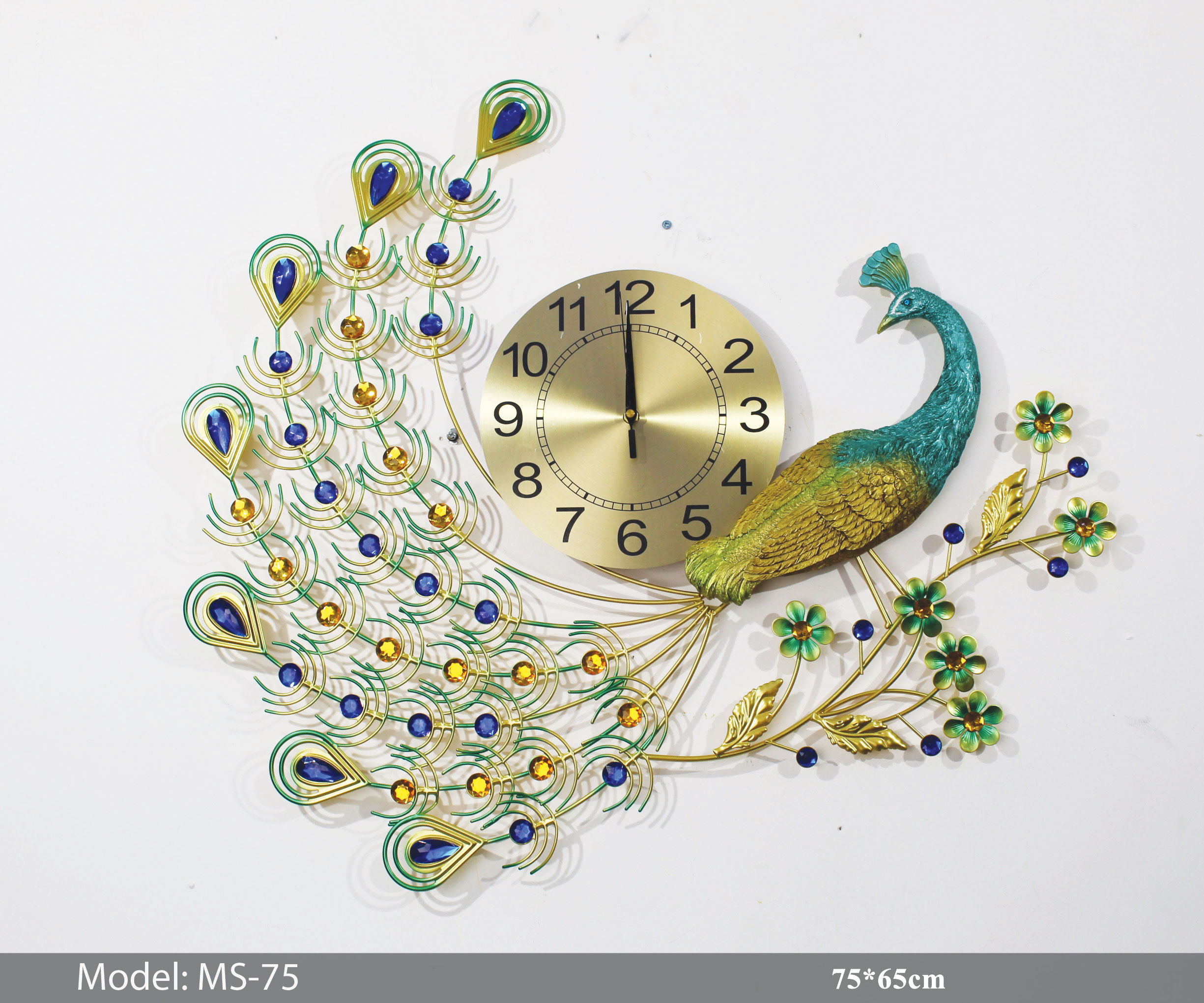 Đồng Hồ Con Công MS-75 là dòng đồng hồ treo tường. Có thiết kế hình con công nổi 3D theo phong cách hiện đại mới. Nhằm để trang trí trong phòng khách. Dòng đồng hồ này ngày càng được ưa chuộng nhờ thiết kế đẹp sang trọng. Độ bền cao được bảo hành tới 5 năm. Đặc biệt giá thành rẻ và là dòng nhập khẩu nguyên chiếc nên việc hoạt động ổn định là rất cao.